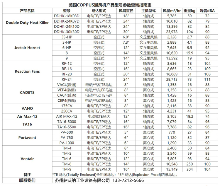COPPUS通風機型號大全: