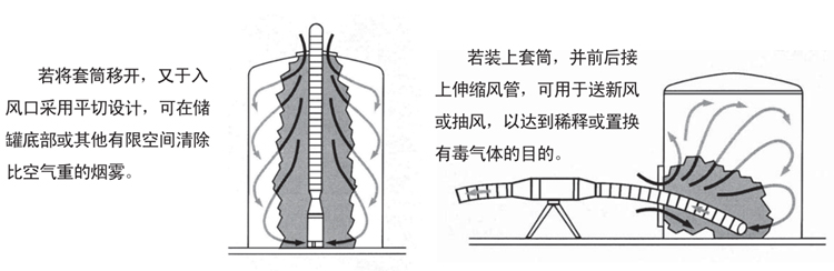 3、適用于油槽、加工槽、油罐車、人孔及其他有限空間通風換氣。