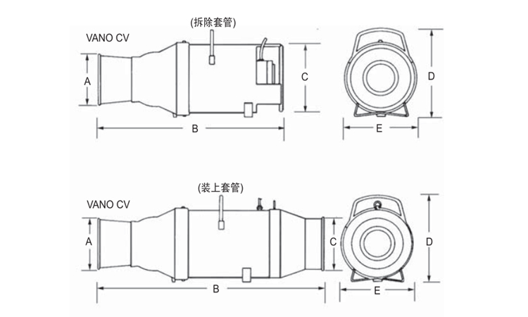 ?175CVX250CV可移式套筒設計,可轉換接頭,能接風管作通風用,亦可自儲罐底部排煙使用。